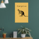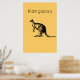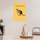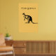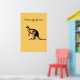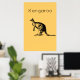 The Yellow Kangaroo Modern Wall Art with the image of a Kangaroo in black against a colorful background with the word "Kangaroo". Looks excellent in any modern living room decor.