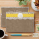 The coral sand dollar beach wedding collection is a stunning design featuring a lovely rustic burlap effect background with a romantic vintage white lace effect trim finished with a stunning sand dollar and yellow ribbon. These envelopes can be personalised for your special occasion and would be the perfect matching envelopes for your wedding announcements, bridal shower invitations, engagement party invites, birthday party invites and much, much more. Matching wedding items can be found in the collection.