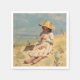 This design features a painting by the Canadian artist Paul Peel (1860–1892). It depicts a young girl lying on a sandy hill as she holds some plants and flowers in her hand. She is wearing a white dress with pink stripes, and she has a straw hat on her head. She is paying so much attention to the flowers in her hand that she may have aspirations of becoming a botanist when she grows up. There is a beach behind her and the blue sea can be seen. The weather is sunny and bright. There are some more plants and flowers growing beside the girl. She also has a book, which she might have used for taking notes about the surrounding flora. The original artwork was painted by Paul peel in 1888.
