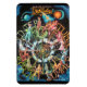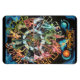 An imaginative, detailed and whimsical illustration, perfect for astrology buffs and people of all sun signs. Twelve teenage girls in costume, dressed for the traditional signs of the western, Greek Zodiac, sit upon a circular, golden celestial wheel with organic swirls, thier constellations close to the centre in a circle, and at the centre of the wheel are the twelve respective zodiac birth stones. The girls are dressed brightly, in each zodiac signs' colours. Behind the bright and colourful characters is a dark night sky with swirling turquiose nebulas, and at the top is the planet Saturn seen in turqoise, the sun and moon in golden yellow-orange and turqoise, and the word "Zodiac" painted in golden yellow-orange. This painting was done in watercolor and guache, and is of all my characters I would later develop into the separate paintings of each zodiac sign. Great artwork for teens and the fun'loving, young at heart.