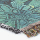 A quality printed throw has its advantages. This is a much finer weave throw than its loopier cousins, and though lighter, it is worth the investment for custom room accessorizing. The back is much prettier than the typical brown, and the fringe on the long sides very vivid, the selvage nicely done. Before photographing, I washed the throw in cold water, delicate, with a thicker woven throw the same size. On tumble dry low, this throw was dry in half the time as the other. This is a very practical quality if you use throws for furniture covers or to wrap up in frequently. The sleekness of the fabric makes it a great layer for accenting or protecting without the feeling of sitting on too much stuff. Perfect for napping or when you feel a light chill coming on. The color printing is beautiful and on this fabric, matched the design and color of my Photoshop image. This is an advantage for blending room fabrics and colors. The fringe on the short sides prints the colors from the design image and therefore varies from the side fringe. I streaked a white fractal line through the plaid pattern to give the illusion of weaving. This printed as crisp as an illusory thread, and put some white in the short side fringe, showing another advantage of print vs loomed- for artistic purposes, line lines, detail, and color integrity can be planned and preserved. My loomed throws have color limitations and more of a needlepoint texture. Print throws reproduce an exact image. The throw felt a little stiff straight out of the package, but this went away in the first delicate wash. Of course I searched the wash water for ink or bleeding and there was none.