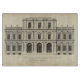 Colen Campbell created this theatrical style façade, which was published in his book Vitruvius Britannicus. A façade is basically a representation of the front, or side, of a building. An amazing architectural drawing that would look great in your home!