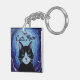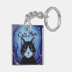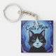 This whimsical keychain features a smiling tuxedo cat surrounded by a lovely blue white purple night sky finished as an oil paint print.