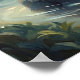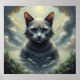 This fantasy poster features a grey cat emerging from a secret hidden Magick portal. This poster is finished as an oil paint print.