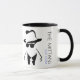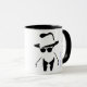 White coffee mug, black handle with TheMittani.com logo and spy guy.