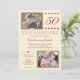 This eye-catching invitation is ideal to celebrate a wedding anniversary with style. It features two frames to place a picture of the couple at the time of marriage and at the present time. The card has a few vintage elements such as the scallop edge and the lines with arrowheads. Small hearts adorn this invitation that also features a stripes background. Stylish and sophisticated design great for a timeless couple. Add your own wording.