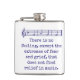 Well made flask, a little better than I had expected. Flask came in clear plastic box which gave it a nice presentation when I took it out of the zazzle packaging. Image is not printed on flask but on sticker. Don't know how this will hold up I haven't used it yet. This would make a Great gift! I plan to purchase more for friends! Cheers. I thought a little brighter than computer. Very crisp, writing wasn't