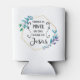 There is Power in the Name of Jesus Can Cooler. This can cooler is perfect for showing your faith in Jesus Christ. The blue floral wreath is a beautiful way to display your Christian beliefs. At the same time, this can cooler keeps your drinks cold and refreshing. So whether you're enjoying a cold beverage at home or at a picnic, this can cooler is a great way to show your faith.