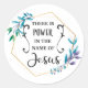 There is Power in the Name of Jesus Classic Round Sticker. This beautiful blue floral wreath with the words "There is Power in the Name of Jesus" is the perfect way to show your faith! Jesus is the ultimate example of power and strength and by His name, we can have Victory in our lives! Peel and stick this decal to any smooth clean surface and show the world whose you are!