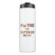 The "thermal tumbler is a visually dynamic and captivating artwork that combines elements of adventure and empowerment. The text itself is prominently featured, with the words "I Am the Captain Now" written in bold, multi-coloured letters, creating a striking and attention-grabbing composition. The overall aesthetic is modern and energetic, conveying a feeling of confidence and determination.