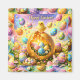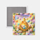 Description at a splash of springtime joy to your kitchen with this enchanting happy Easter decorative magnet. This high-quality square magnet features a fluffy yellow chick perched on a glowing golden egg surrounded by a magical field of decorated Easter eggs and a sweet white bunny set against a dreamy rainbow sky this colourful scene is perfect for holding up recipes holiday cards or your favourite