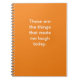 These are the things that made me laugh today. Personalise this spiral-bound journal with your choice of colour! Makes a great gift! A journal of funny moments will be treasured for years to come! This is also a great item for anyone with depression...Writing about things that make you laugh will brighten your day and help you look for something you can write in your journal. And on days that are not so joyful, you can look back at those moments that. made you laugh!