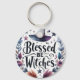 This whimsical keychain features a cute floral watercolor print with the words Blessed Be Witches.