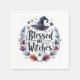 These whimsical party napkins feature a fun floral watercolor print with the words Blessed Be Witches.