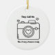 They Call Me the Crazy Camera Lady on a ceramic ornament.
