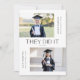 Celebrate two graduates in one with a fun and stylish double graduation photo invitation. This modern black-and-white design features minimalist typography and a budget-friendly digital format, perfect for kindergarten, high school, college, or nursing grads. A unique and affordable way to announce their big achievement!