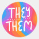 THEY/THEM Pronouns Rainbow Handlettering Sheet of Classic Round Sticker