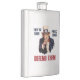 The product is a good size and came exactly as it was pictured.  The lid is not attached to the flask, which could be dangerous on drunken nights... The print came out surprisingly well and looks very sharp.  Would definitely recommend.
