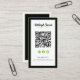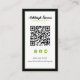 Double-sided, modern black and white business card with QR code, lime green social media icons and chunky script font. Use the QR code to easily connect with clients and customers on social media like Instagram, Facebook, and YouTube. Customize with your logo, URL and social media user name, and custom text. Replace the icons to suit the needs of your business. Order your new business cards now and make it easier than ever to connect with customers on social media.