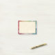 The background is an abstract painting using thick expressive brushstrokes with a lot of motion and movement. Lots of heavy paint in blues, yellows, reds, orange and green. The foreground is a parchment paper texture with a a dark brown border.