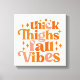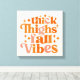 This vibrant and playful fall design features the fun and confident phrase "Thick Thighs Fall Vibes" in a bold, retro-inspired font. The text is arranged in a dynamic, stacked layout, with each word filled in warm autumn hues, including shades of orange, peach, and soft pink. The surrounding star-like sparkles add a touch of whimsy and shine, enhancing the festive and cosy feel of the design. The typography is both bold and curvaceous, giving it a lively, vintage appeal that perfectly captures the essence of fall.