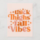 This vibrant and playful fall design features the fun and confident phrase "Thick Thighs Fall Vibes" in a bold, retro-inspired font. The text is arranged in a dynamic, stacked layout, with each word filled in warm autumn hues, including shades of orange, peach, and soft pink. The surrounding star-like sparkles add a touch of whimsy and shine, enhancing the festive and cosy feel of the design. The typography is both bold and curvaceous, giving it a lively, vintage appeal that perfectly captures the essence of fall.