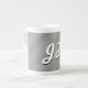 Thin Black & White Stripes | Retro-Styled Initials Bone China Mug