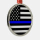 Thin Blue Line American Flag Black and White Metal Tree Decoration