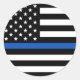 Thin Blue Line Police Sticker - American flag in Police Flag colours.This thin blue line sticker is a perfect for envelopes, letterhead, thank you, decorations for retirement or graduation parties, and giveaways at events or to kids at school programs from a visiting police officer. For law enforcement officers, detective, sergeant, lieutenant, captains, and deputy, chief of police, first responders and front line workers and supporters. See our collection for police patches and personalised id patches.  COPYRIGHT © 2020 Judy Burrows, Black Dog Art - All Rights Reserved. Thin Blue Line American Flag Classic Round Sticker