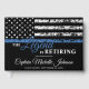 This design features a police force flag with black and white stripes, and a thin blue line stripe as well. "The Legend is Retiring" text sits above the customisable name of the retiring law enforcement officer, sheriff, captain, or chief. Celebrate this milestone in style!