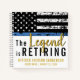 This design features a police force flag with black and white stripes, and a thin blue line stripe as well. "The Legend is Retiring" text sits above the customisable name of the retiring law enforcement officer, sheriff, captain, or chief. Celebrate this milestone in style!