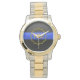 Very good quality watch that looks good whether dressing up or down. The band is sturdy. The watch is rather large so might not work for smaller folks. Recommended as a good gift. Printing is just a touch light but adds a nice touch of personalization.