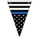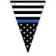 Celebrate your event with this custom Thin Blue Line Bunting Banner. This is the perfect decor for any party, celebration or banquet. It adds an unforgettable touch to nearly every conceivable gathering including promotions, swearing in, retirement, recognition event or even funerals. It's an excellent addition to birthday parties and weddings too. Don't forget police officers' memorial day May 15. You will be remembered by your guests as the ultimate party planner with this unique law enforcement banner.