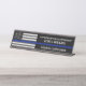 Desk name plate featuring the classic black and white police flag with the thin blue line. Edit the name of the department, officer's name and title, for a one of a kind gift for your favourite law enforcement professional.