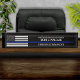 Desk name plate featuring the classic black and white police flag with the thin blue line. Edit the name of the department, officer's name and title, for a one of a kind gift for your favorite law enforcement professional.