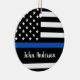 Introducing our Thin Blue Line Flag police ornament, the perfect addition to your holiday decor and a thoughtful gift for any law enforcement officer in your life. This American flag-inspired ornament features a bold blue line that pays tribute to the brave men and women who serve and protect our communities every day.