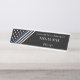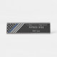 This elegant nameplate is the perfect choice for police officers. It features a thin blue line flag design with stars and stripes in black and white at an angle on the left of the name plate. To the right is a name, workplace, and job title for you to personalise.