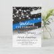 Police themed wedding invitation to celebrate a officers getting married. Featuring a US flag with the thin blue line, string lights, and a modern wedding template that is easy to personalise.