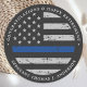 Add the finishing touch to your police retirement or graduation party invitations and police congratulations thin blue line police stickers and party supplies. USA American flag design in Police Flag colours, vintage worn design on leather. This police officer retirement collection will be a favourite. See our thin blue line collection for matching police retirement invitations, law enforcement graduation invitations, police gifts, party favours, and supplies. COPYRIGHT © 2020 Judy Burrows, Black Dog Art - All Rights Reserved. Thin Blue Line Retirement Police Congratulations Classic Round Sticker