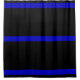 Thin Blue Line Shower Curtain. The Thin Blue Line is a symbol used by law enforcement, originating in the United Kingdom but now prevalent in the United States and Canada to commemorate fallen law enforcement officers and to symbolise the relationship of law enforcement in the community as the protectors of civilians from criminal elements. It is an analogy to the term Thin Red Line. Each stripe on the emblem represents certain respective figures: the blue centre line represents law enforcement, the top black stripe represents the public whilst the bottom represents the criminals. The idea behind the graphic is that law enforcement (the blue line) is what stands between the violence and victimisation by criminals of the would-be victims of crime.