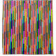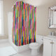 This shower curtain has a geometric design of colourful stripes running vertically.