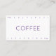 Simplify your coffee loyalty program with the Thin Double Number Loyalty Coffee Punch Card. Designed for convenience, this card streamlines the process of tracking your visits and earning rewards. Its sleek and minimalist design fits perfectly into your wallet or phone case, ensuring you never miss out on a stamp. The double-number punch system adds an element of uniqueness to your loyalty experience. Whether you're a regular coffee drinker or an occasional visitor, this punch card is a stylish and practical way to enjoy your favourite brew while reaping the benefits of loyalty perks. Upgrade your coffee routine with the Thin Double Number Loyalty Coffee Punch Card.