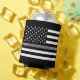 Show your support with this black and white thin grey line American flag can cooler. Personalise by replacing the sample name with your own name for a one of a kind gift for correctional officers. Great for days at the beach, picnics, and parties.