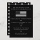 Invite your retirement party guests in style with this thin grey line flag invitation. This design features a background of black with a thin grey line flag and your party details in white typography separated by white stars. The back of the card has a pattern of white stars on black. The perfect choice for correctional officers and those in corrections profession. Designed by world renowned artist ©Tim Coffey.