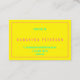 Make a bold first impression with a modern business card featuring a thin neon pink border, bright yellow backdrop, and clean typography accents in pink and green. The minimal layout highlights a city line, name, role, and contact details while keeping the design fresh and highly legible for networking. All text, fonts, colours, and sizes can be edited to match brand guidelines and to create a cohesive, standout identity across print and social.