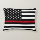 This accent pillow features a black and white firefighter thin red line American flag along with a name for you to personalise.