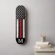 Thin Red Line Skateboard - American flag in Firefighter Flag colours, distressed design . Personalise this firemen skateboard with monogram initial. This personalised fireman skateboard deck is perfect for firefighters, fireman, firefighter graduation and retirement gifts . COPYRIGHT © 2020 Judy Burrows, Black Dog Art - All Rights Reserved. Thin Red Line Personalised Patriotic Firefighter skateboard