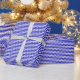 A wrapping paper designed with a royal blue and white wavy pattern in thin width. You can change the royal blue for a different colour.