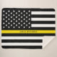 This large size blanket features a black and white dispatcher thin yellow line American flag along with a name for you to personalise. Small and medium sizes also available in our collection.