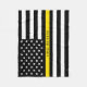 This small size blanket features a black and white dispatcher thin yellow line American flag along with a name for you to personalise. medium and large sizes also available in our collection.